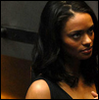 Description: A moon rising above a darkened landscape in front of a starry night sky.